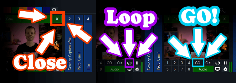 GO– The GO button replaces Quick Play. By default it functions the same as the Quick Play transition but also adds full shortcut functionality for each GO button on every input!